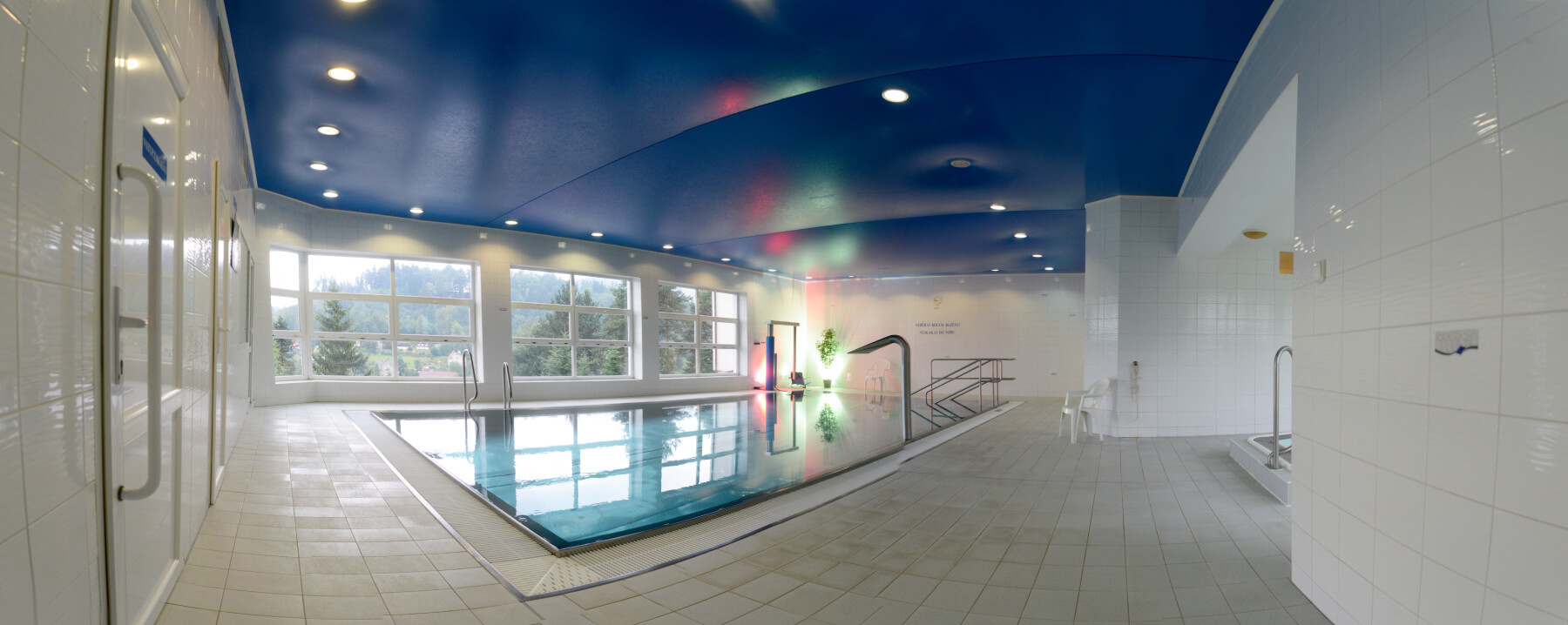 Zveme Vás do našeho krytého rehabilitačního bazénu. Na stres, únavu a bolest platí hydroterapie. Rozměry bazénu jsou 10 x 5 m, hloubka 1,35 m, teplota vody 28-32°C.